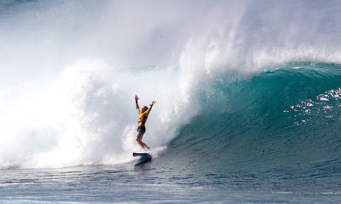 On bojuje o to, aby získal svoj štvrtý surfovací svet Korunu po porážke Slater s skóre 9,50 až 6,17.Ten bude teraz čeliť Gabriel Medina v prvom semifinále.